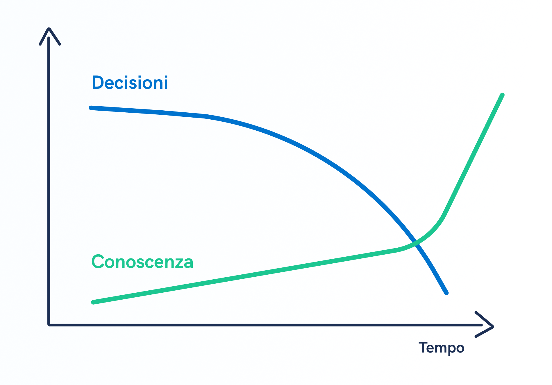 C’è un evidente quasi paradosso, che consiste nel prendere molte decisioni nella fase di analisi e progettazione, quando la conoscenza di quello che si vuole davvero fare e di come farlo è bassa. Queste decisioni vengono poi ratificate e “congelate”, impedendo ulteriori modifiche durante l’implementazione, quando il livello di conoscenza aumenta.