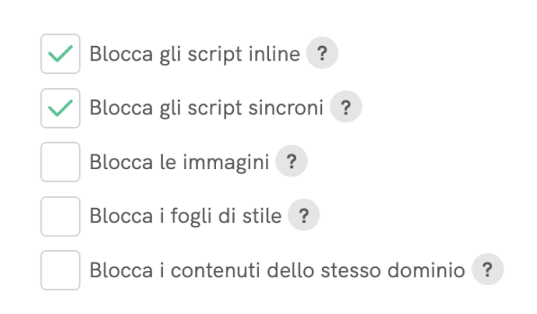 - Blocca i contenuti dello stesso dominio: Quando questa opzione è abilitata, il contenuto del tuo stesso dominio verrà bloccato sul tuo sito web. Il blocco riguarderà script, immagini, fogli di stile e altre risorse provenienti dal tuo stesso dominio. Fai attenzione quando abiliti questa opzione perché potrebbe influenzare la funzionalità e l’aspetto del sito.