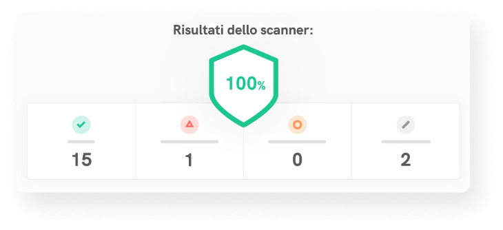 In pochi secondi, riceverai un report dettagliato su tutte le aree di compliance analizzate, eventuali problemi e come risolverli in pochi click.