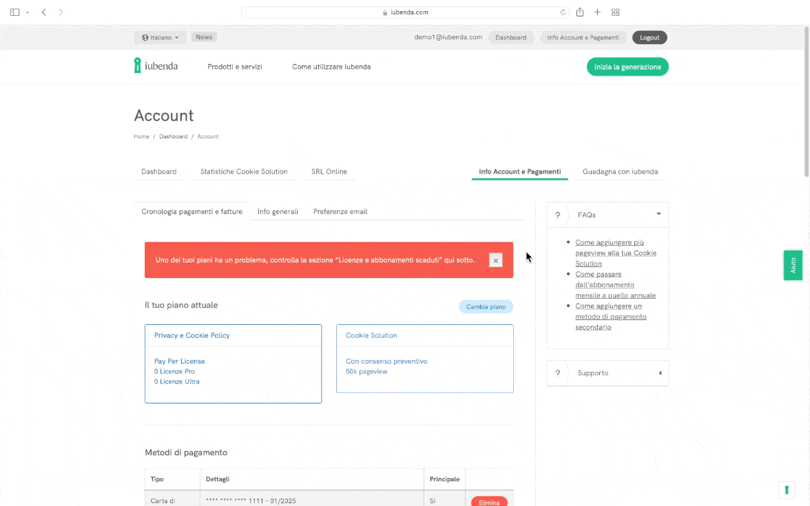 1. Vai a → Dove trovare i piani iubenda scaduti