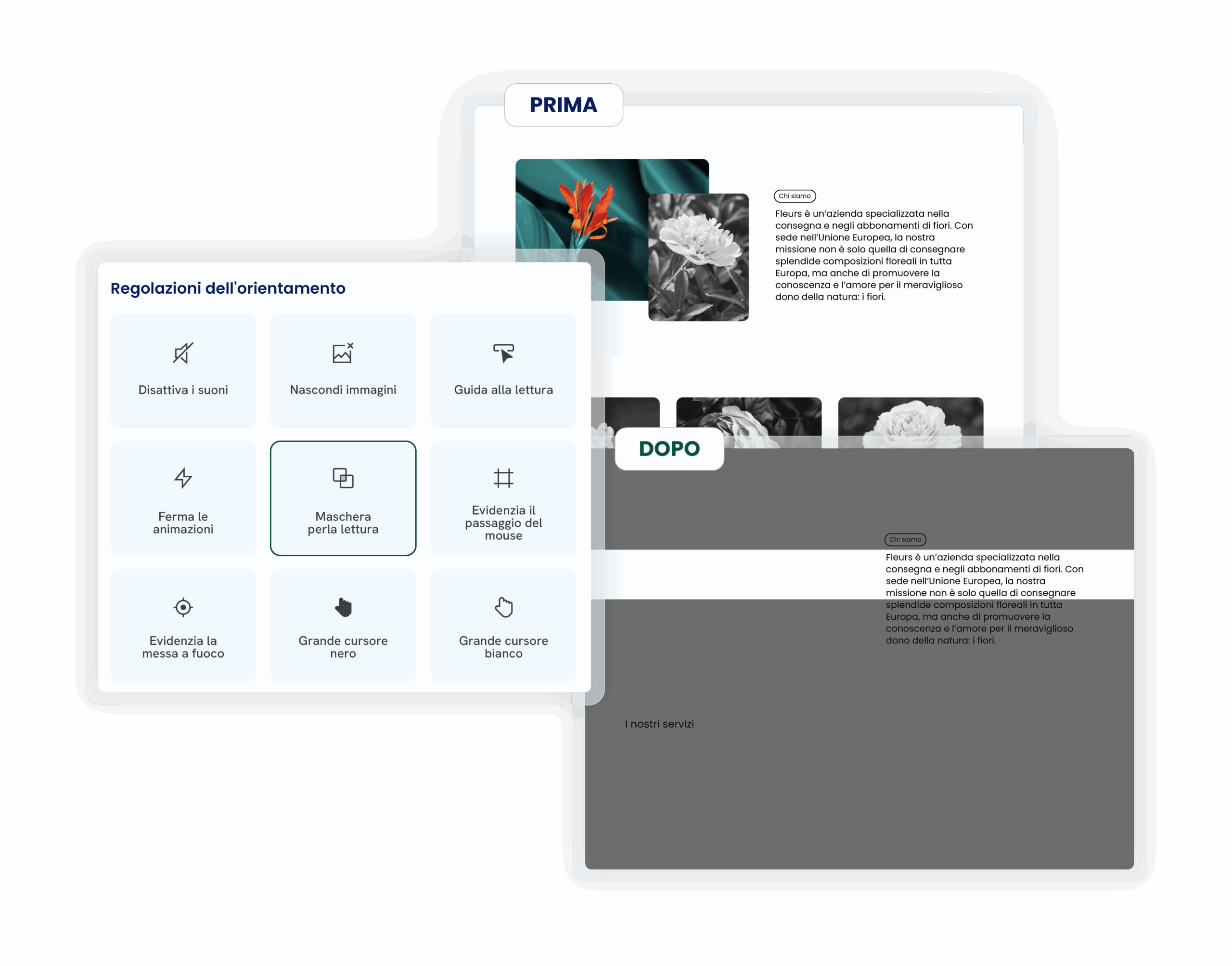 Setup in pochi minuti. Nessuna competenza tecnica richiesta. Il tuo sito diventa più accessibile subito.