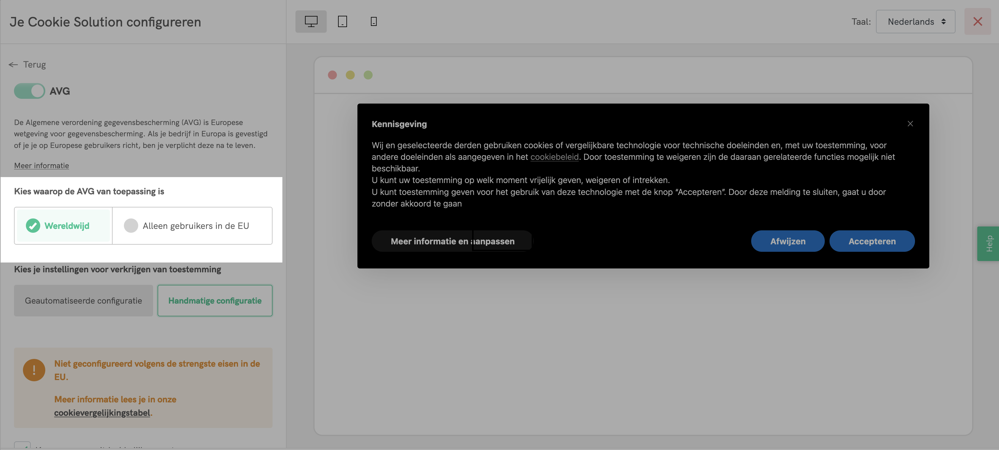 Je wordt nu rechtstreeks doorverwezen naar het configuratiescherm van je cookiebanner/toestemmingsbanner:
