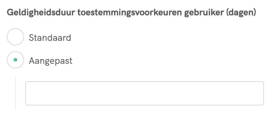 Sommige Europese gegevensbeschermingsautoriteiten hebben regels vastgesteld over hoelang de toestemming voor cookies redelijkerwijze geldig kan zijn. In Frankrijk is dat bijvoorbeeld 6 maanden. In onze Privacy Controls and Cookie Solution kun je gemakkelijk een dergelijke periode instellen. Meer informatie over de geldigheidsduur in verschillende landen vind je in onze Cookie Consent cheatsheet.