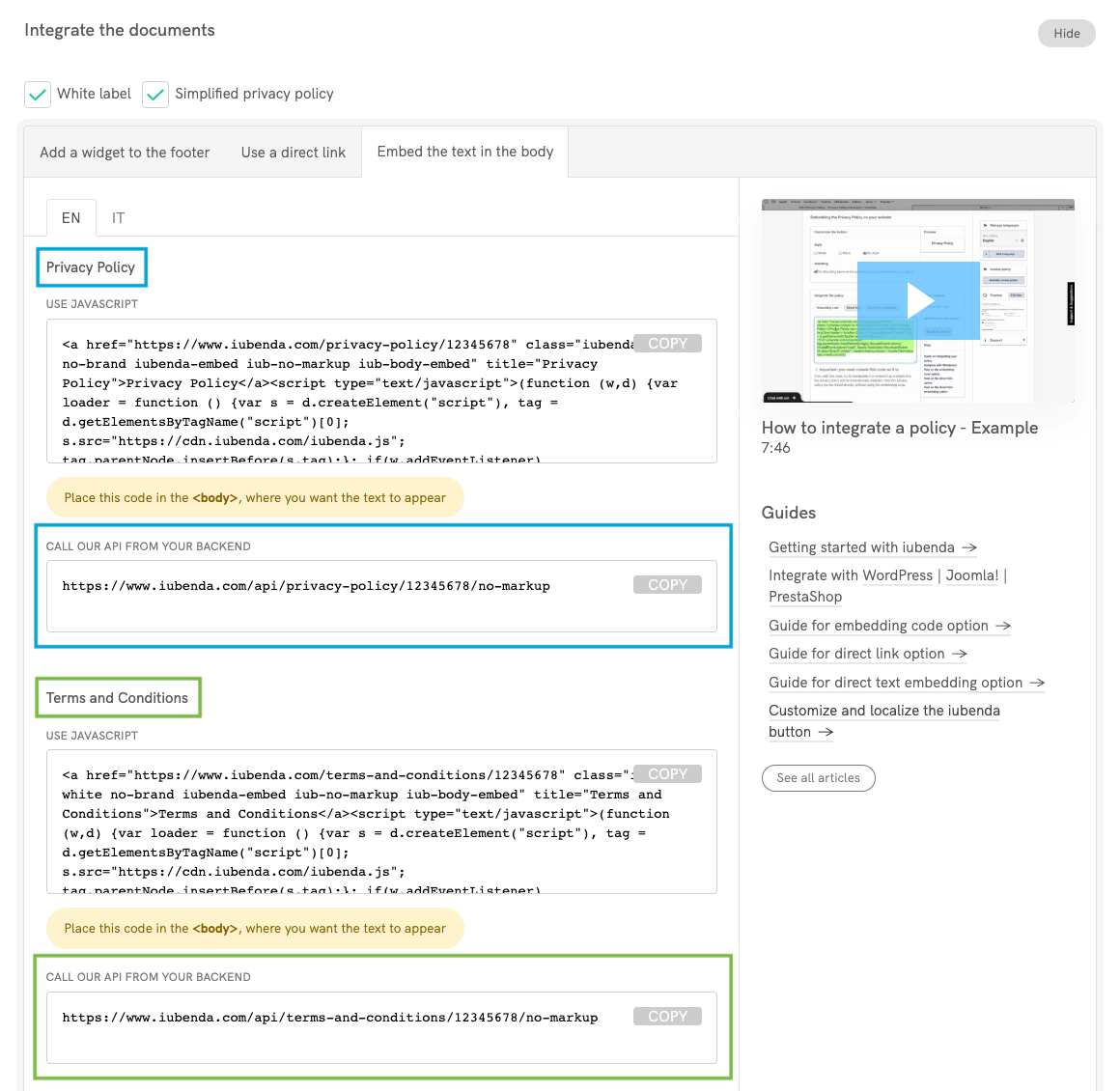 - How to Integrate iubenda’s Terms and Conditions on your Site and App