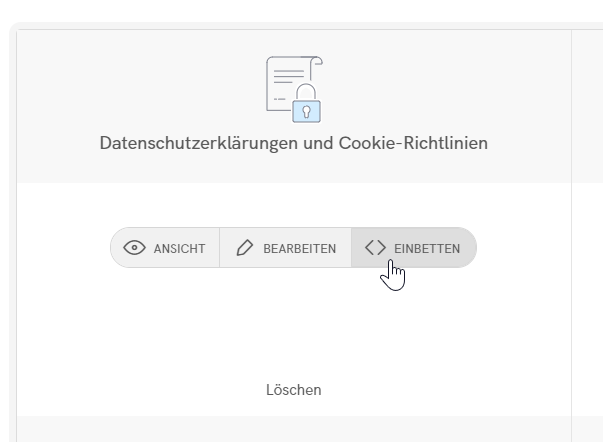 Sie können den Link in den Einstellungen Ihrer Datenschutzerklärung finden, indem Sie auf den Button „Einbetten“ klicken: