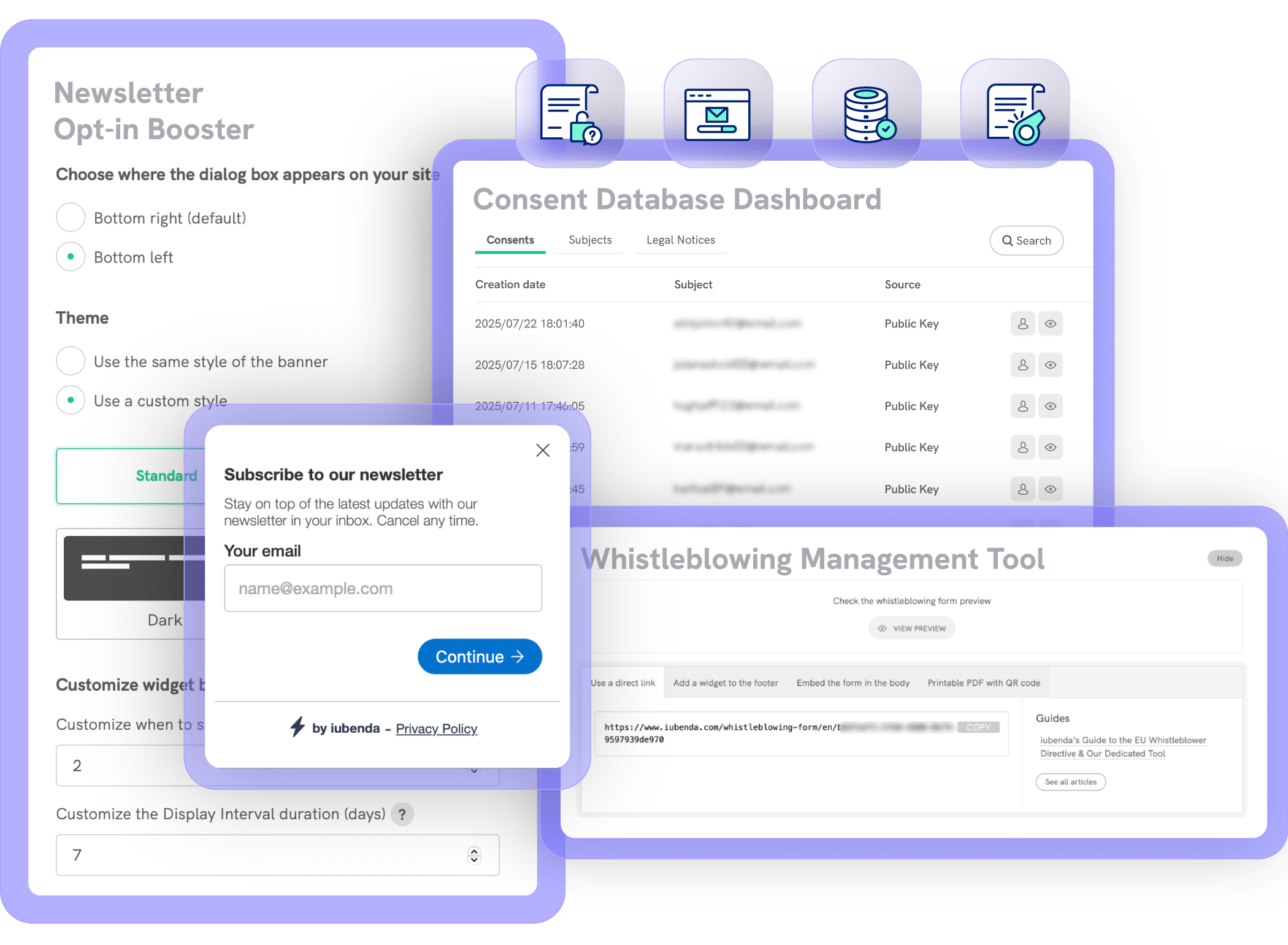Compliance is constantly changing, but you don’t have to keep chasing it. iubenda helps you stay aligned with the latest regulations with smart tools that keep up, so you can stay focused on the work that matters. Not magic. Just handled.