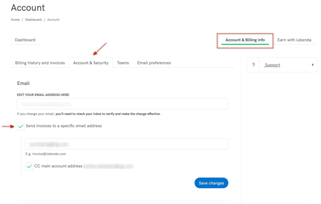 To receive our invoices on an email address other than the one associated with your account, follow the steps below: