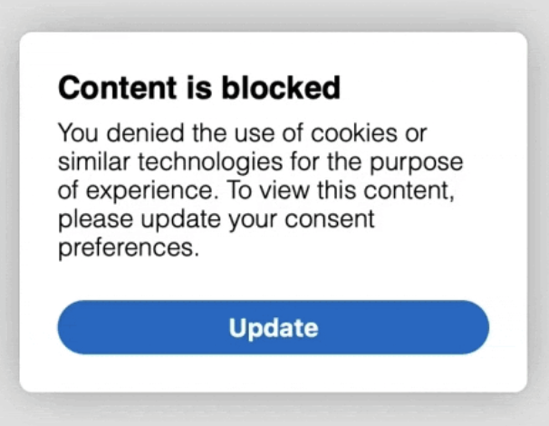 The one below is an example of a cookie wall, even though it’s just a partial one. In fact, this one doesn’t block the navigation of the whole website, but just a piece of content that needs cookies to load. However, the functioning is the same: you can’t access the website or content if you don’t accept cookies.