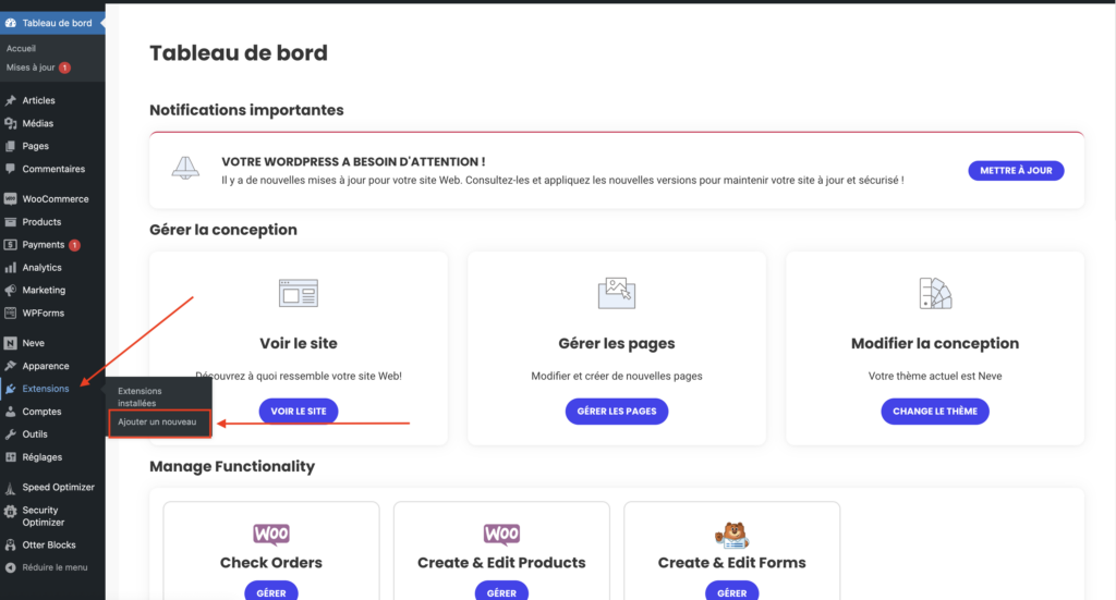 Depuis le tableau de bord de l’extension, vous pourrez configurer et gérer les produits que vous avez activés ou en ajouter de nouveaux.