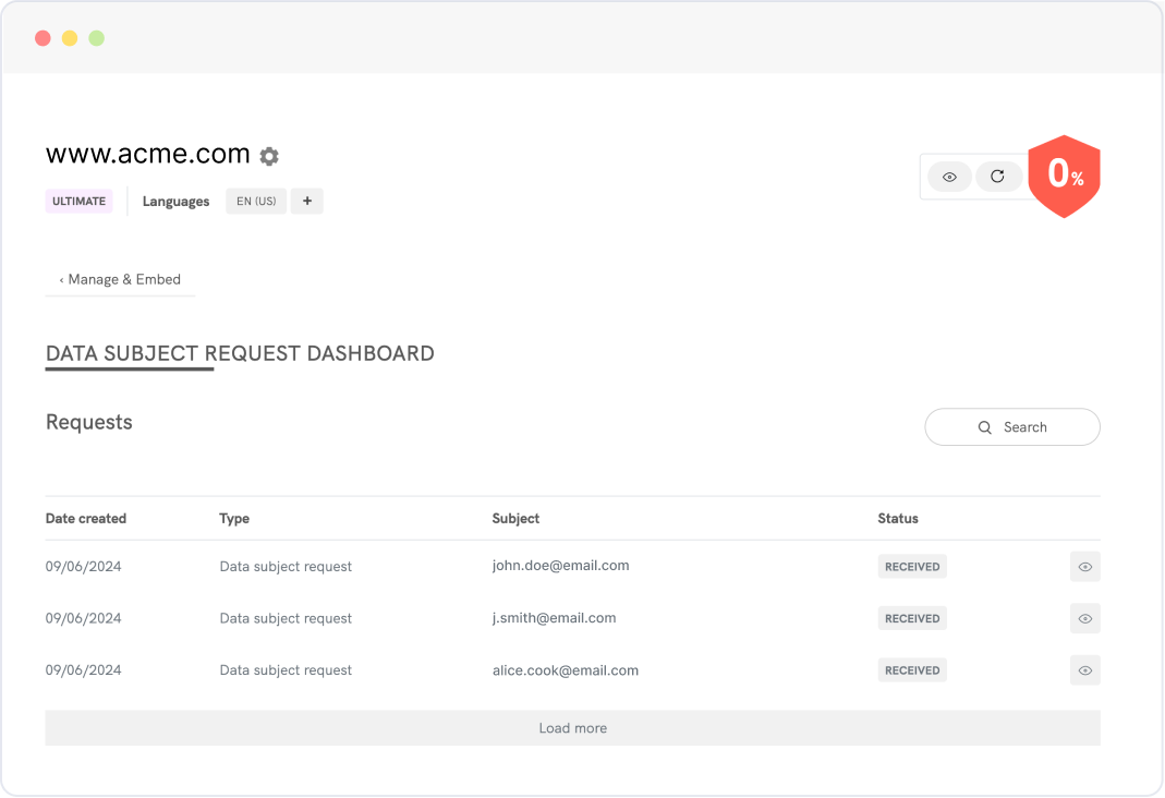 - Supporto completo per un’ampia gamma di richieste dell’interessato