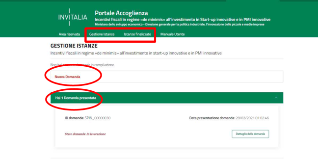 Nella sezione “Gestione istanze” troverai il dettaglio e gli esiti di tutte le istanze che hai inoltrato (una per ogni investimento effettuato a favore della società).