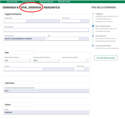 Nel primo passo ti saranno richiesti i dati del soggetto richiedente (in questo caso, saranno i dati della società).