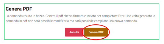 Terminata la compilazione, se questa è corretta, ti verrà data la possibilità di generare un PDF della stessa. Per farlo clicca su “Genera PDF”.