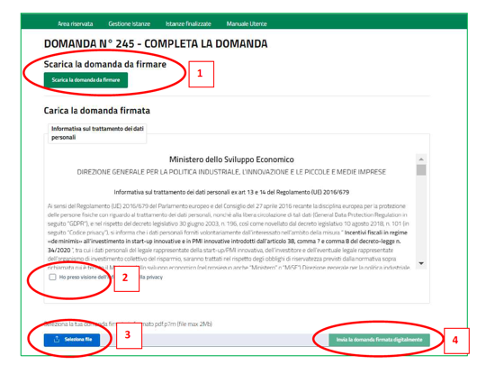 - Invia la domanda firmata digitalmente