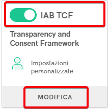 1) Nella sezione IAB TCF del configuratore di Privacy Controls and Cookie Solution, clicca su “Modifica”