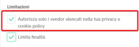È raccomandabile mostrare solo i fornitori TCF con i quali lavori, piuttosto che la lista completa dei fornitori TCF. Ai fornitori sarà presto richiesto di fornire informazioni aggiuntive all’interno dell’Elenco dei fornitori globali (Global Vendor List, GVL). In questo modo sarà più facile per gli editori decidere con chi lavorare.