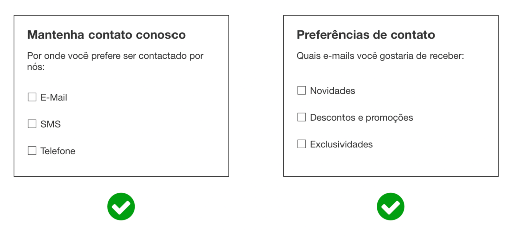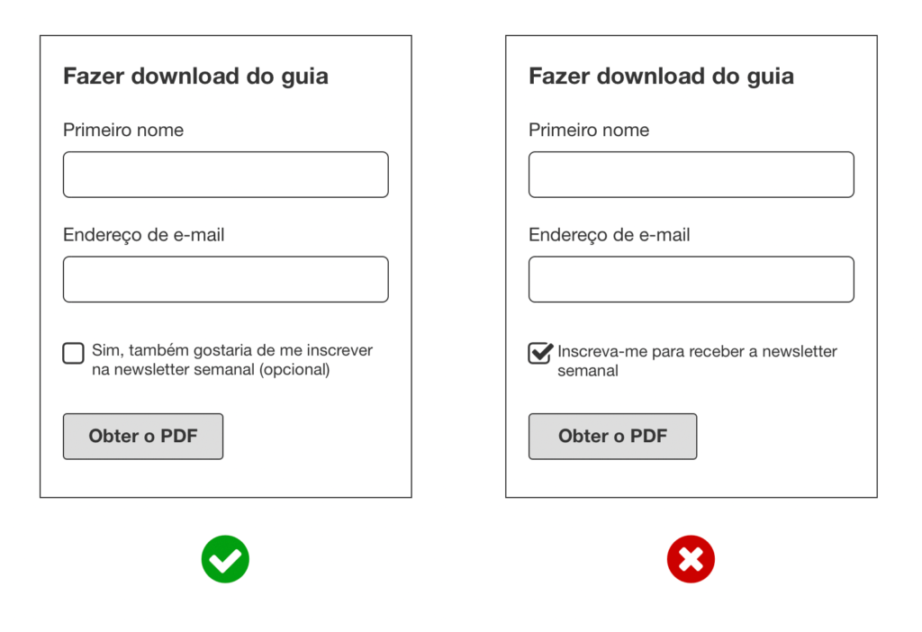2. Não use caixas de seleção pré-marcadas nos seus formulários de consentimento
