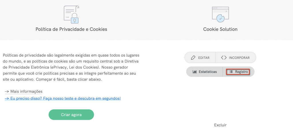 💡 Não tem certeza se precisa do Registro de preferências de cookies e consentimentos? Faça este teste de 1 minuto para descobrir