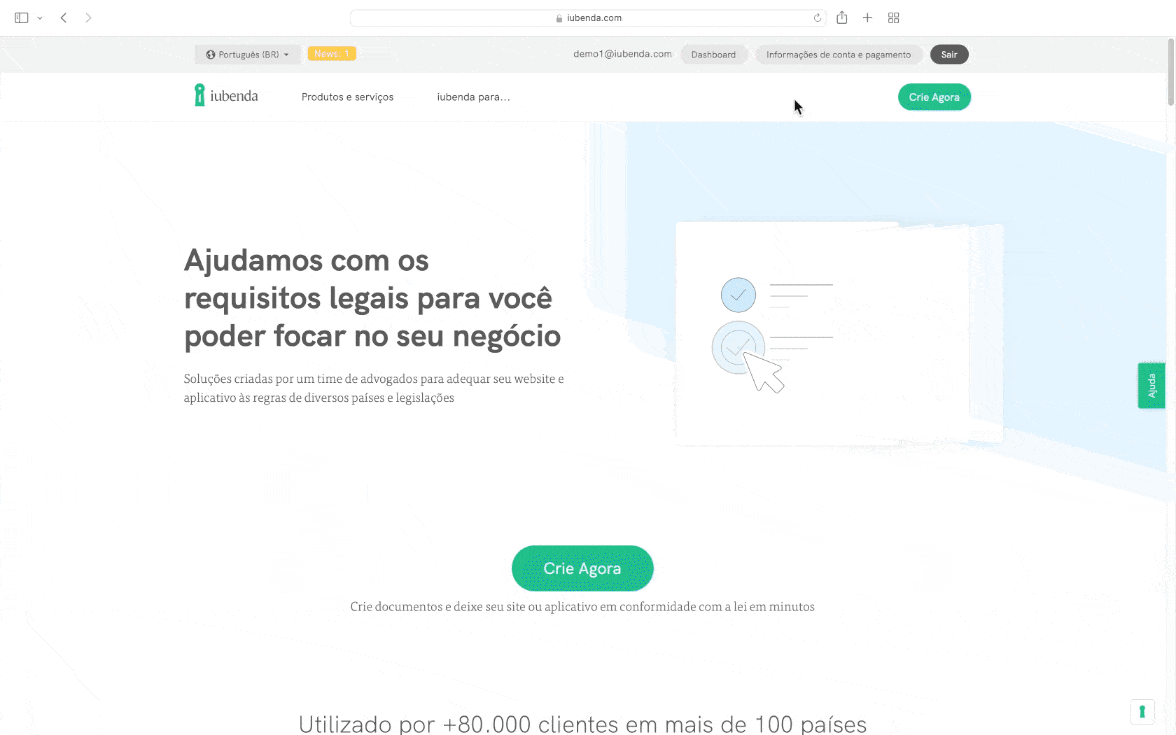 - Primeiro faça login na sua conta da iubenda em iubenda.com
