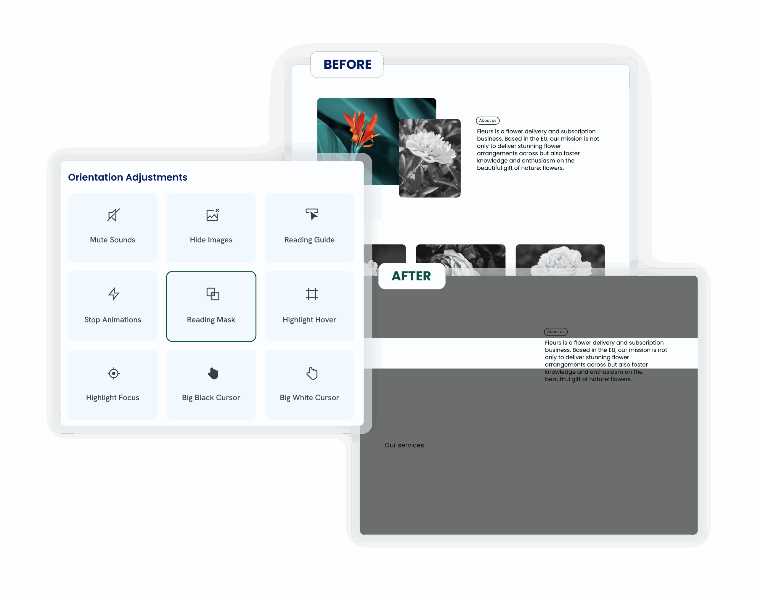 Com apenas uma linha de código, você melhora a acessibilidade, atende aos requisitos da Lei Europeia de Acessibilidade (EAA) e transforma mais visitantes em clientes.