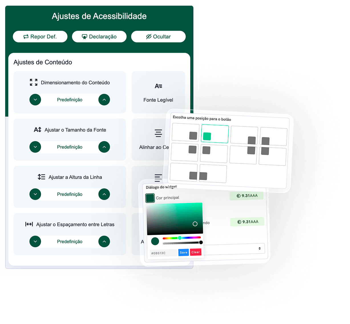 O WayWidget oferece aos visitantes controle sobre fontes, cores, navegação e áudio para que eles possam moldar o seu site às necessidades deles em segundos.