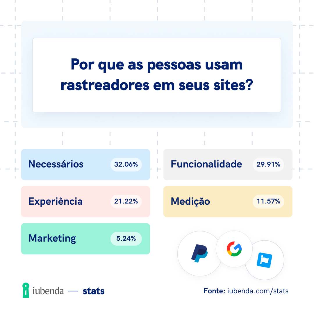 💡 Em média, um website utiliza 3 rastreadores de terceiros.O seu site é um deles? Se for o caso, terá de o revelar aos seus utilizadores, de acordo com as leis de privacidade internacionais. O cumprimento da regulamentação é essencial para proteger a confiança dos utilizadores e evitar sanções.